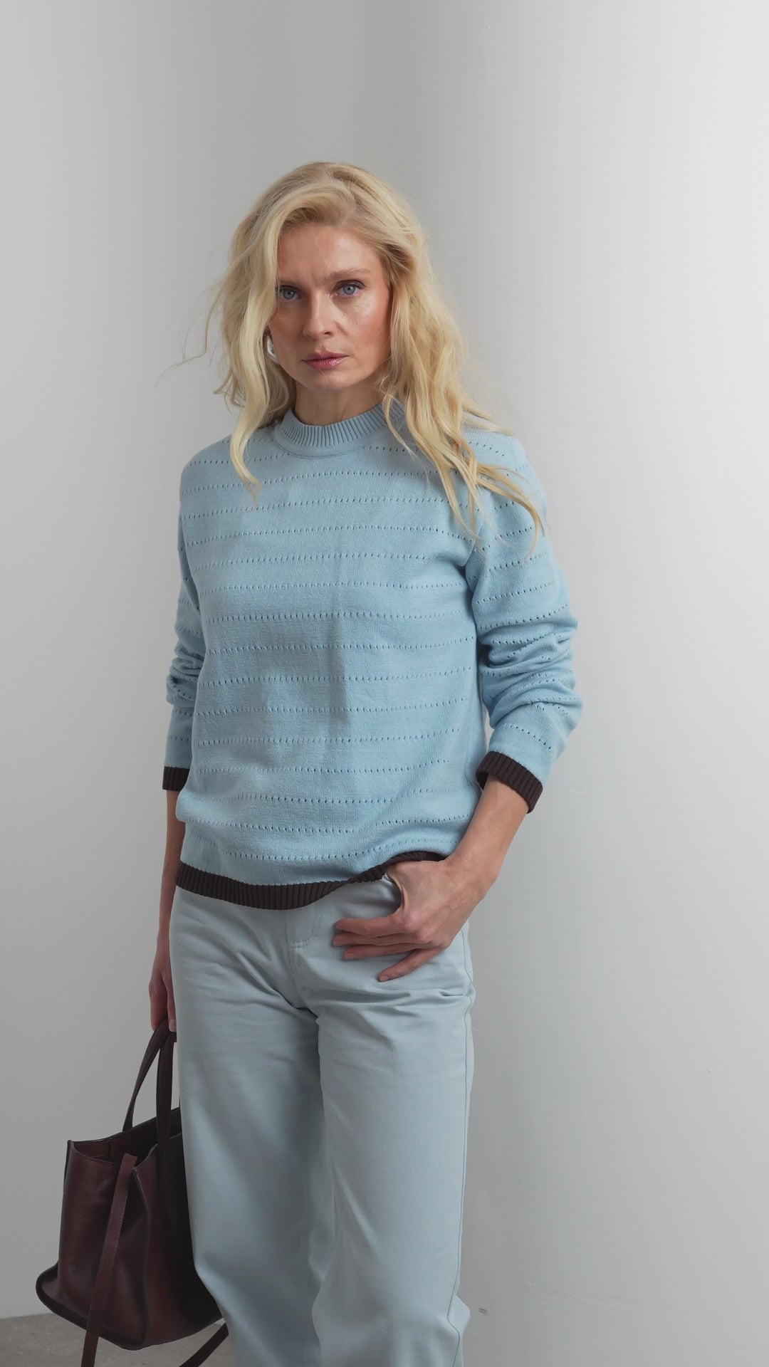 Cotton Bamboo Knit Sweater With Contrast Cuffs
