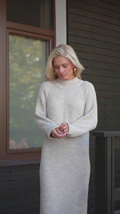Refined warmth, timeless elegance. This midi-length dress is crafted from premium wool-rich yarn with a dense, stable knit that holds its shape beautifully. A minimalist front ornament elevates the look, while the mock neck gently wraps the neckline in soft comfort. With its clean lines and structured silhouette, this dress combines sophistication with cozy ease — perfect for cooler days, office wear, or evening gatherings. Soft and breathable, it delivers lasting comfort with a gentle touch, making it an effortless style staple.